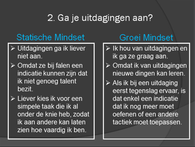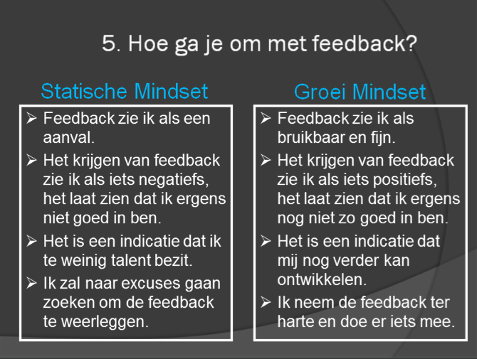 Er zijn twee verschillende mindsets te onderscheiden: de statische en de groei mindset.