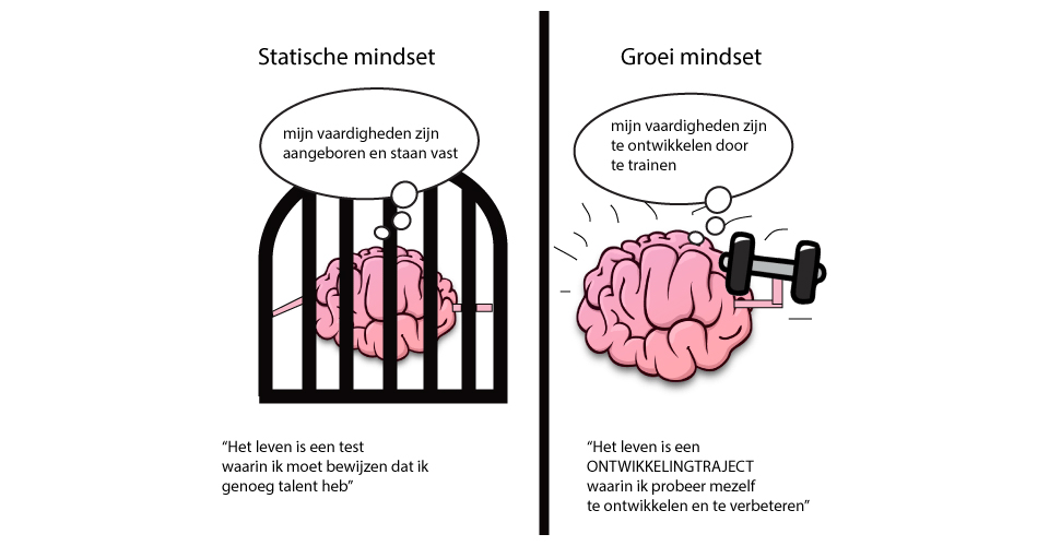 Er kunnen twee mindsets onderscheiden worden: de groei mindset en de statische mindset.